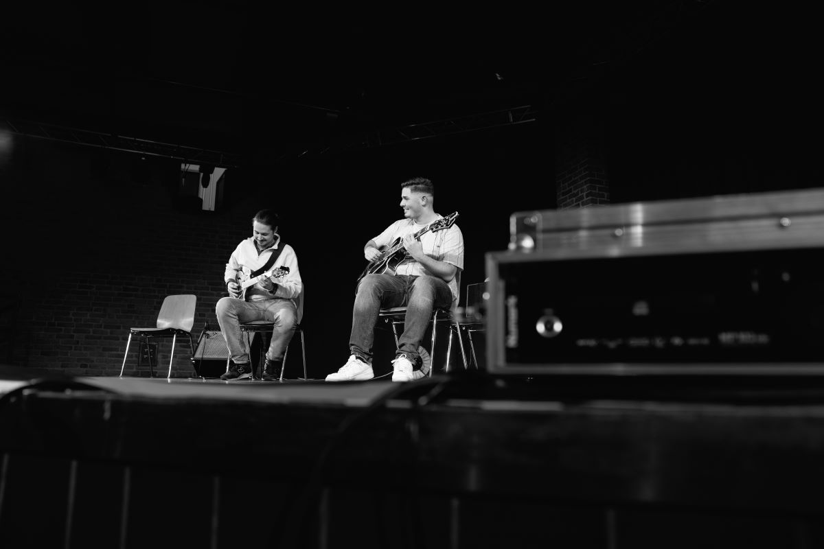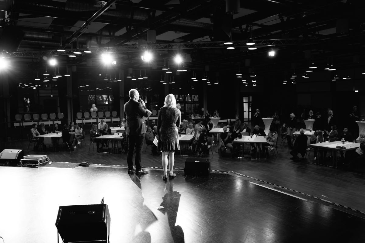 Unser 25. Jubiläum feiern wir das ganze Jahr über, mit und für unsere Gruppenkinder, immer nach unserem Leitsatz „Hingehen statt kommen lassen“. Für die „Großen“ in und um Kindernöte e.V. machten wir es nun umgekehrt: Sie kamen zu uns! (Gründungs-)Mitglieder, Vorstands-Aktive und -Ehemalige, Team und Honorarkräfte, KooperationspartnerInnen, Spender, Förderinnen – kurzum, Menschen, die Kindern in Chorweiler den Rücken stärken und uns verbunden sind. Sie erlebten, begrüßt und mit vielen Dankesworten versehen von Barbara Steinhoff (Vorsitzende) und Axel Rütjes (Schatzmeister), drei tolle Geburtstagsgeschenke: Unser Kindernöte-Film hatte Premiere, die Tanzschule La Boom besuchte uns mit drei begeisternden Auftritten und das Duo David Riter und Donovan Tusk brachte Gitarrenjazz auf die Bühne des Bürgerzentrums.