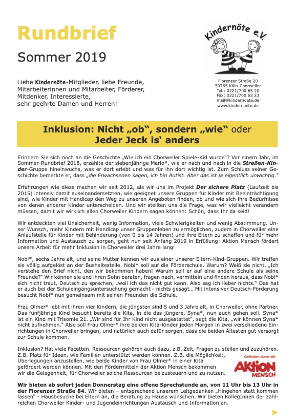 Rundbrief Sommer 2019